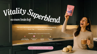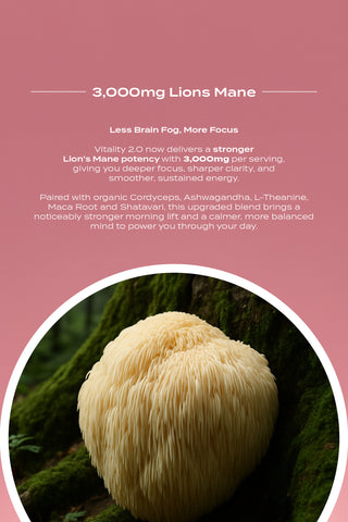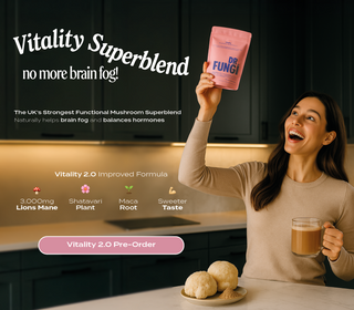 Our Vitality Blend is a carefully designed superblend which contains very potent Functional Mushrooms including Lions Mane, Cordyceps, Reishi and Chaga. These 4 Mushrooms are great pillars to your overall wellness as they help target and improve areas such as, Your Focus, Your Immunity, Your Stress and Your Energy.